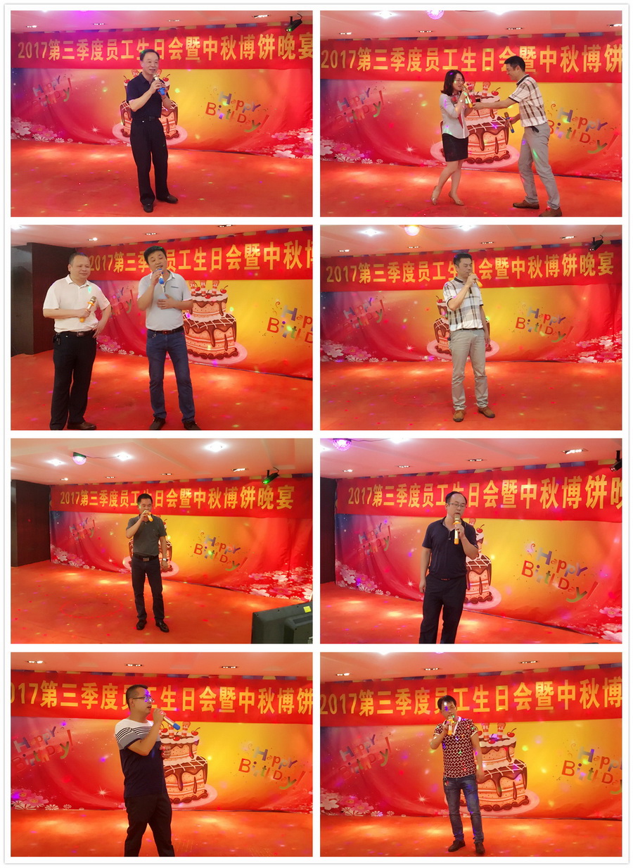 金秋九月,它不僅給我們帶來了涼涼的秋意,還為我們迎來了中國傳統(tǒng)節(jié)日——中秋佳節(jié)。2017年9月29日晚,在公司行政人事部的統(tǒng)一部署下,“2017第三季度員工生日會暨中秋博餅晚宴”的聯(lián)歡活動在公司七樓多功能廳開展。同時(shí),次日人力行政中心還精心組織開展集體活動。